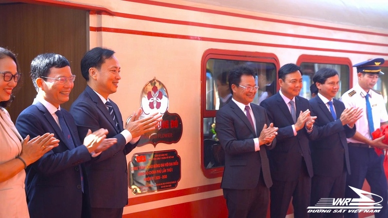 Đường sắt gắn biển công trình chào mừng Đại hội Đảng bộ Chính phủ