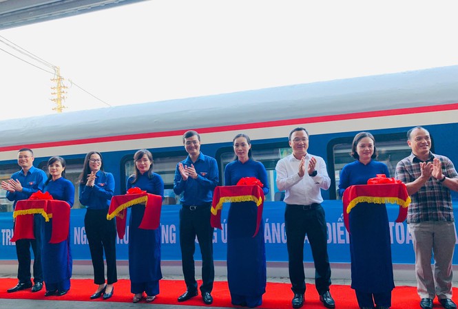 Đại biểu thực hiện nghi thức khánh thành đoàn tàu tuyên truyền về văn hóa giao thông