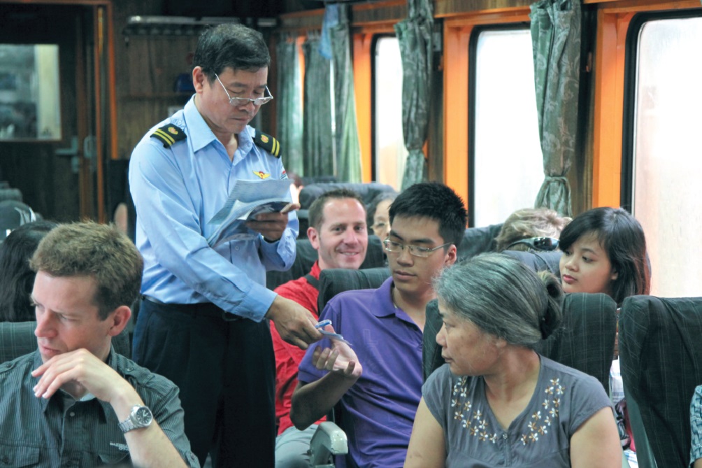 Nhân viên ĐS kiểm tra vé của hành khách trên tàu