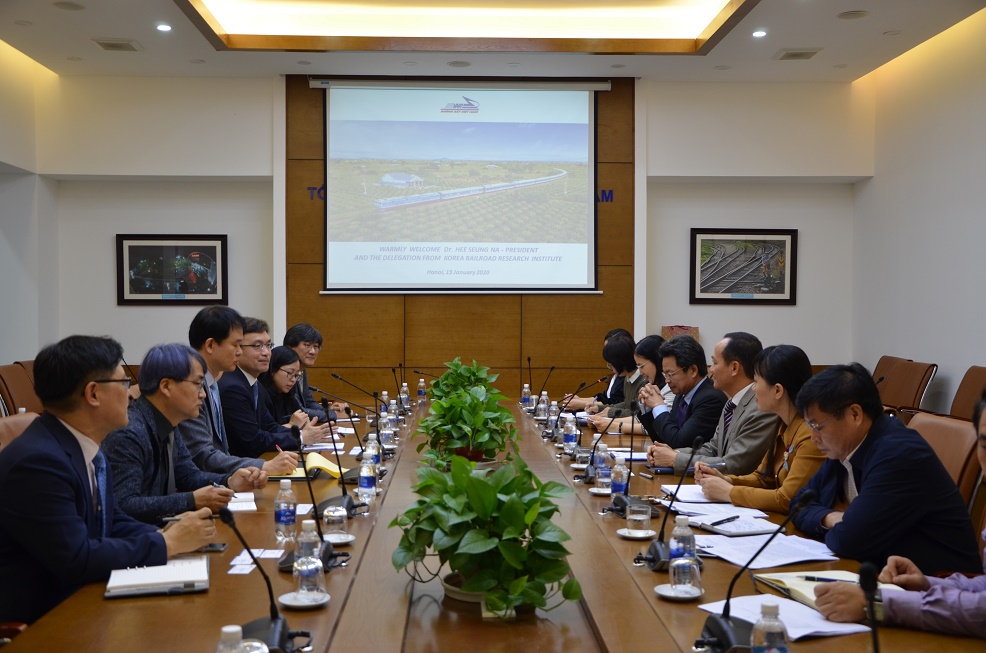 Ngày 15/01/2020, Tổng giám đốc Đặng Sỹ Mạnh đã tiếp và làm việc với đoàn công tác của Viện nghiên cứu Đường sắt Hàn Quốc (KRRI) do TS. Hee Seung Na - Chủ tịch Viện Nghiên cứu kỹ thuật Hàn Quốc làm trưởng đoàn. Tới dự buổi làm việc có đại diện các ban: HTQT & KHCN, Hạ tầng, Đầu tư xây dựng.