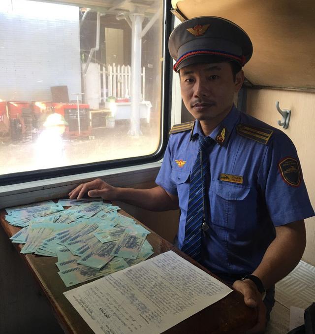 Nhân viên tổ tàu SE22 vừa phát hiện, trao trả hành khách 100 triệu bỏ quên trên tàu khi xuống ga Quảng Ngãi vào sáng ngày 19/7.