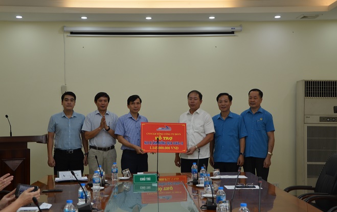 Chủ tịch ĐSVN trao tiền ủng hộ của CBNV ngành ĐS cho Công ty VTĐS Hà Nội