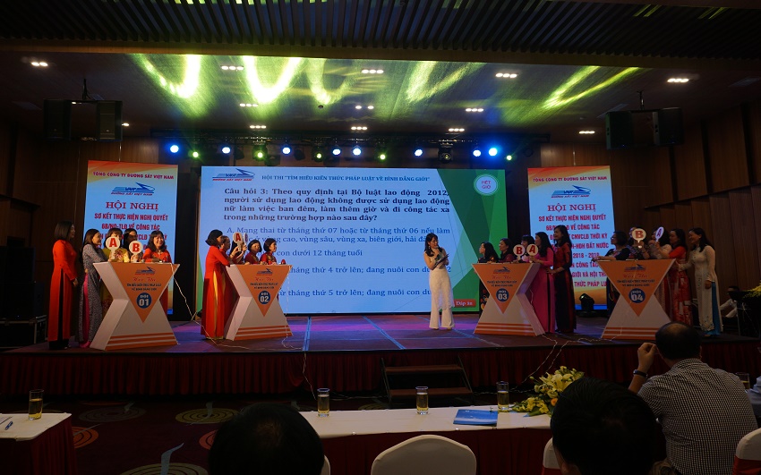 Hội thi “Tìm hiểu kiến thức pháp luật về bình đẳng giới” được tổ chức theo hình thức sân khấu hóa với 4 phần thi (Chào hỏi, Kiến thức, Năng khiếu, Hùng biện) với sự tham gia của 4 đội (Khối các đơn vị vận tải, Khối các đơn vị quản lý, điều hành, sự nghiệp và đầu máy, Khối các đơn vị bảo trì kết cấu hạ tầng đường sắt, Khối các đơn vị công nghiệp, xây lắp, dịch vụ) đã tạo nên sự hấp dẫn, lôi cuốn khán giả.