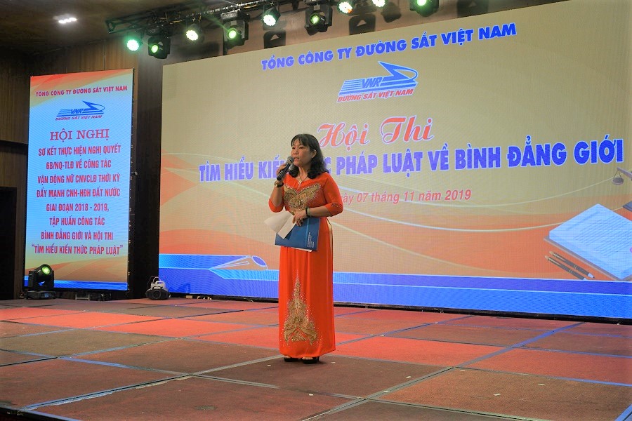 Thực hiện Chương trình công tác của Ban Vì sự tiến bộ phụ nữ Tổng công ty ĐSVN năm 2019, hưởng ứng Tháng hàng động “Vì bình đẳng giới và phòng chống bạo lực trên cơ sở giới” (từ ngày 15/11 đến 15/12/2019), Tổng công ty ĐSVN tổ chức Hội nghị sơ kết Nghị quyết 06b về công tác vận động nữ CNVCLĐ trong thời kỳ đẩy mạnh Công nghiệp hóa - Hiện đại hóa đất nước giai đoạn 2018 - 2019 và Hội thi “Tìm hiểu kiến thức pháp luật về bình đẳng giới”.