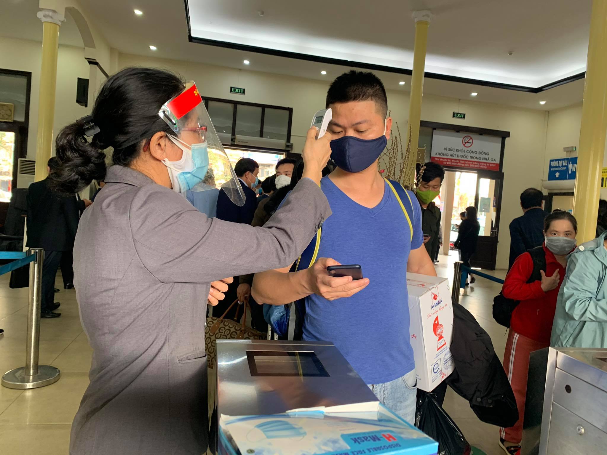 Mọi hành khách lên tàu đều được kiểm tra thân nhiệt và đeo khẩu trang