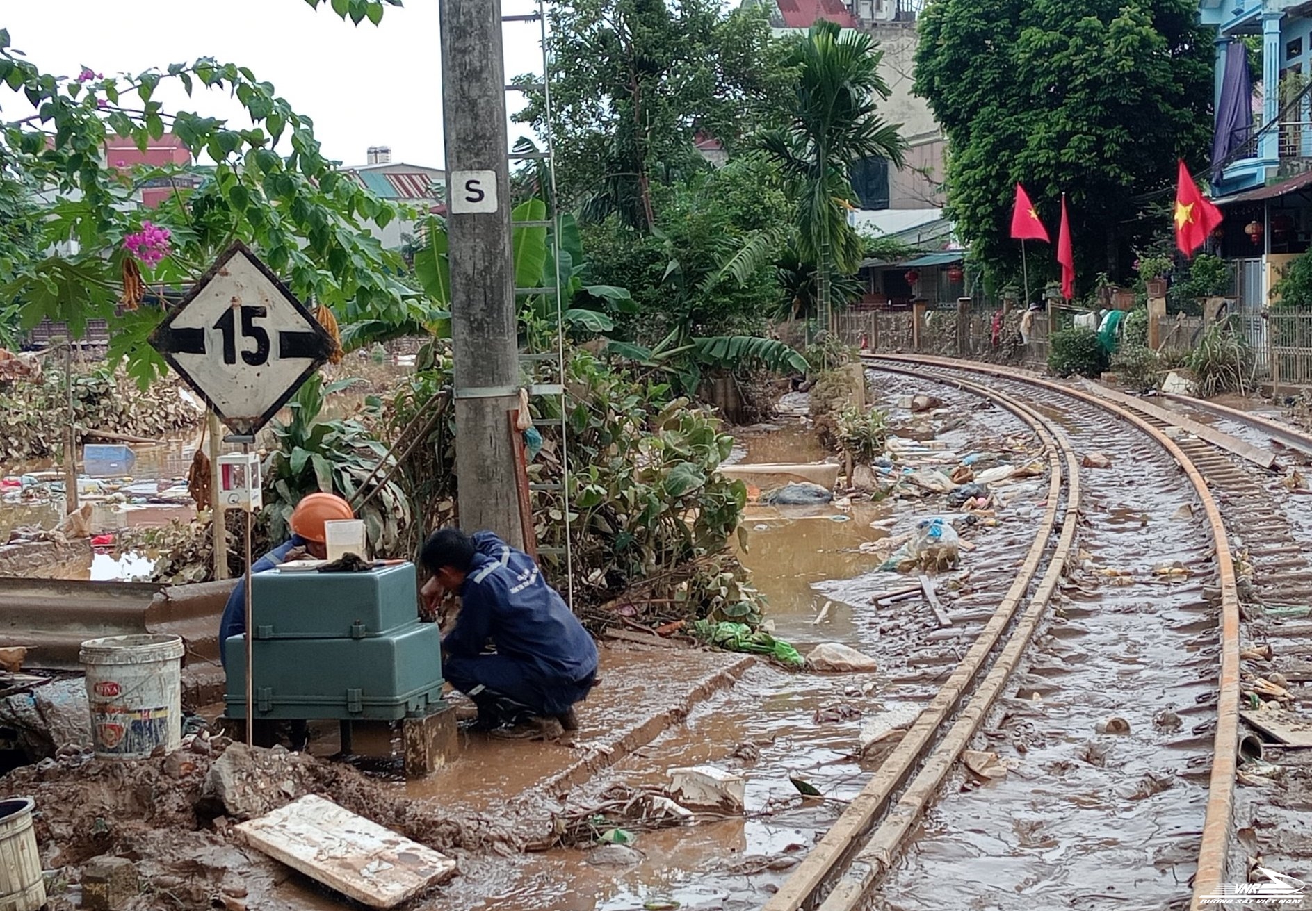 Khu vực ga Yên Bái sau bão số 10 là một khung cảnh hoang tàn. Nước ngập sâu khiến toàn bộ thiết bị thông tin ngoài trời bị hư hỏng nặng: hòm biến thế, hộp cáp, máy quay ghi, giá rơle, thậm chí cả những cảm biến tín hiệu tinh vi cũng bị ngập trong bùn đất.