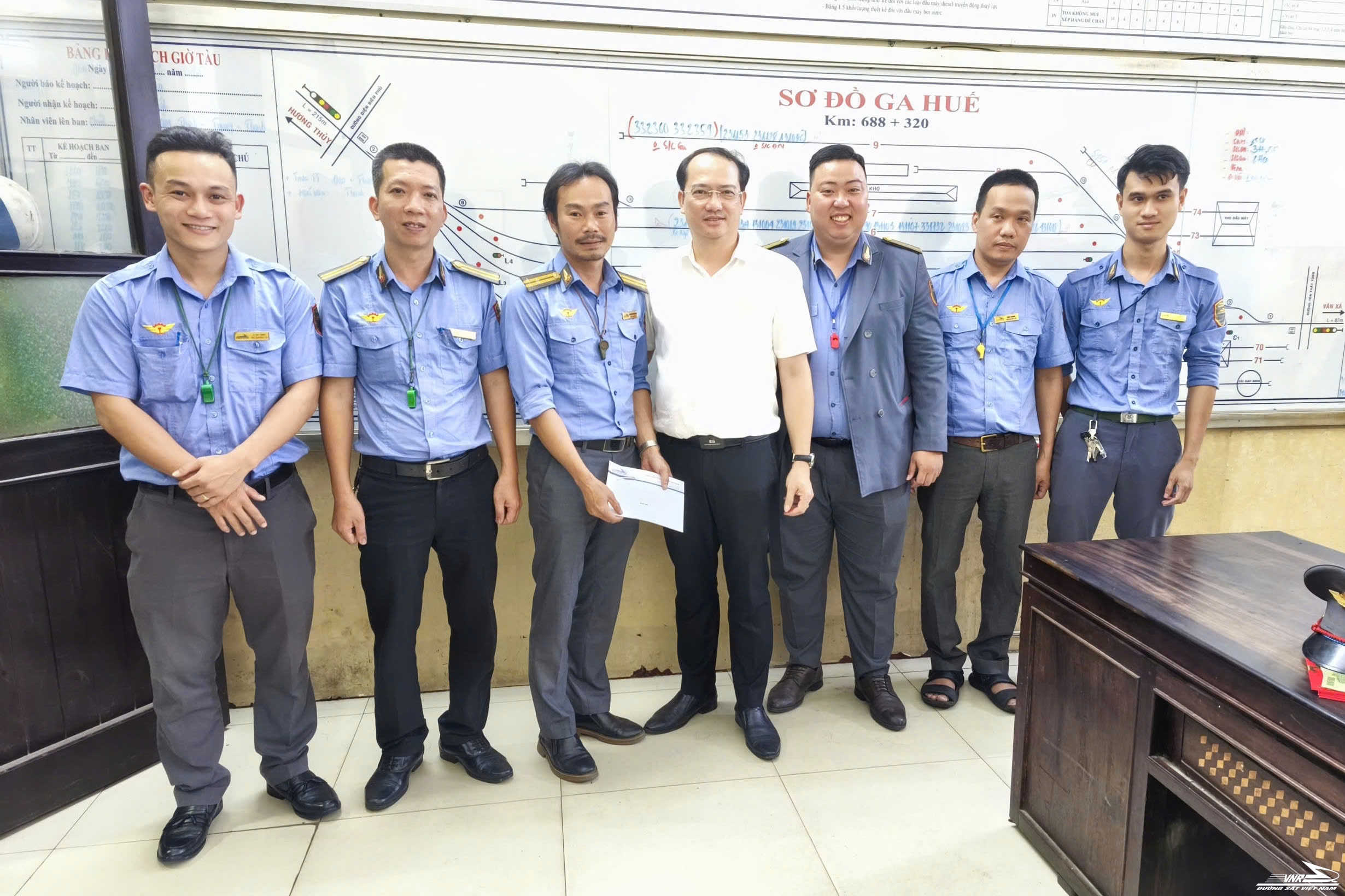 Chi nhánh Khai thác ĐS Nghĩa Bình thừa ủy quyền của Tổng giám đốc phối hợp với các đơn vị ĐS khu vực Đà Nẵng chúc Tết các tập thể lên ban đêm giao thừa và hành khách đi tàu SE7 tại ga Đà Nẵng