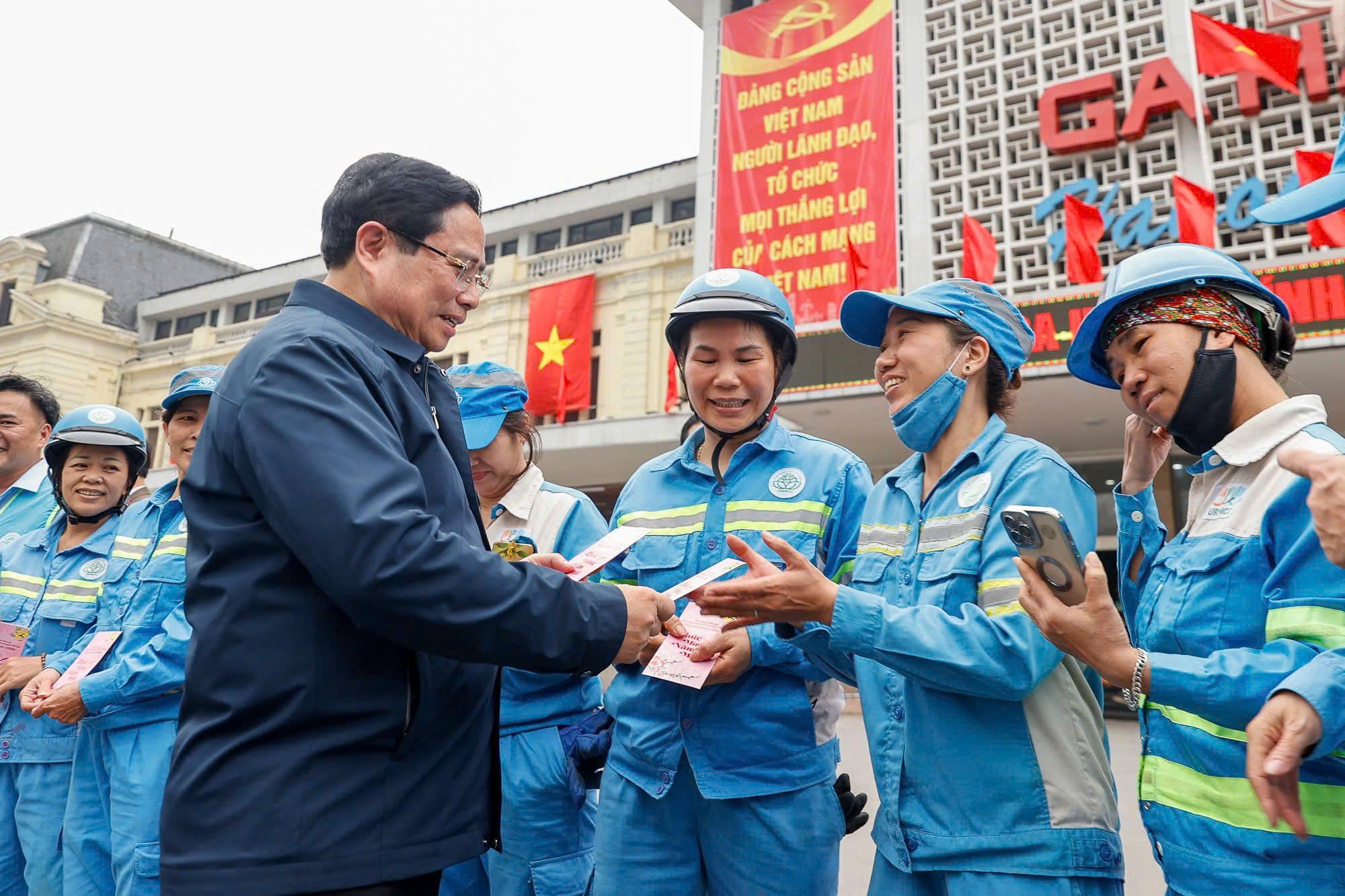 Trong không khí phấn khởi mừng Đảng, mừng Xuân, cả nước đón chào Tết cổ truyền của dân tộc, Xuân Bính Ngọ 2026, sáng 15/2 (tức 28 tháng Chạp năm Ất Tỵ), Thủ tướng Chính phủ Phạm Minh Chính đã thị sát kiểm tra công tác phục vụ hành khách và thăm hỏi, động viên, tặng quà công nhân, người lao động đang trực tiếp làm vệ sinh môi trường tại ga Hà Nội.