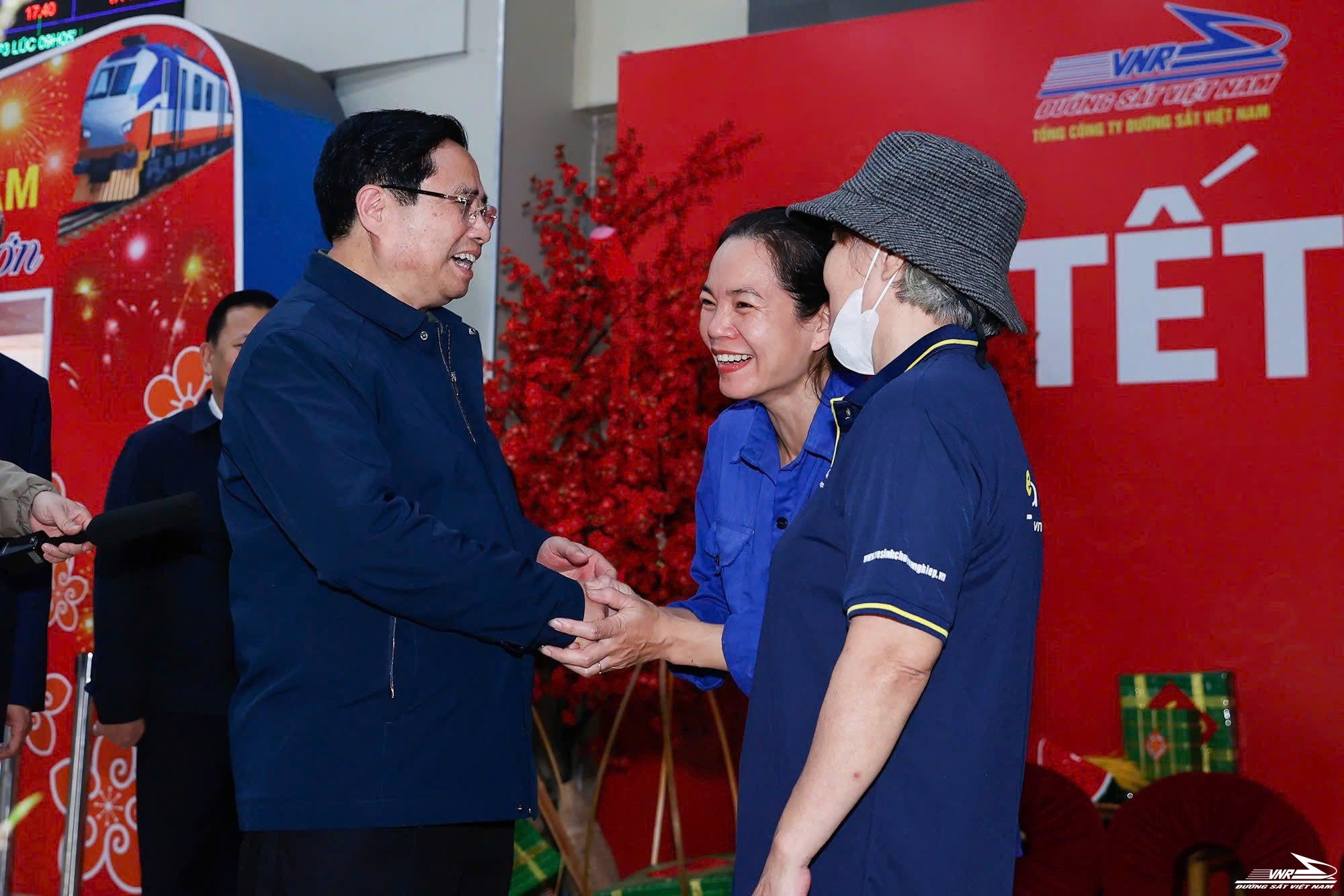 Tại ga Hà Nội, Thủ tướng Chính phủ Phạm Minh Chính đánh giá cao nỗ lực của CBCNV- Lao động ngành ĐS trong việc chuẩn bị sẵn sàng phục vụ nhu cầu đi lại của hành khách trong dịp Tết; đặc biệt biểu dương lực lượng trực tiếp làm vệ sinh môi trường tại khu ga đã nỗ lực góp phần để môi trường Thủ đô ngày càng được cải thiện, đón năm mới Bính Ngọ 2026 trong không gian sáng - xanh - sạch - đẹp.