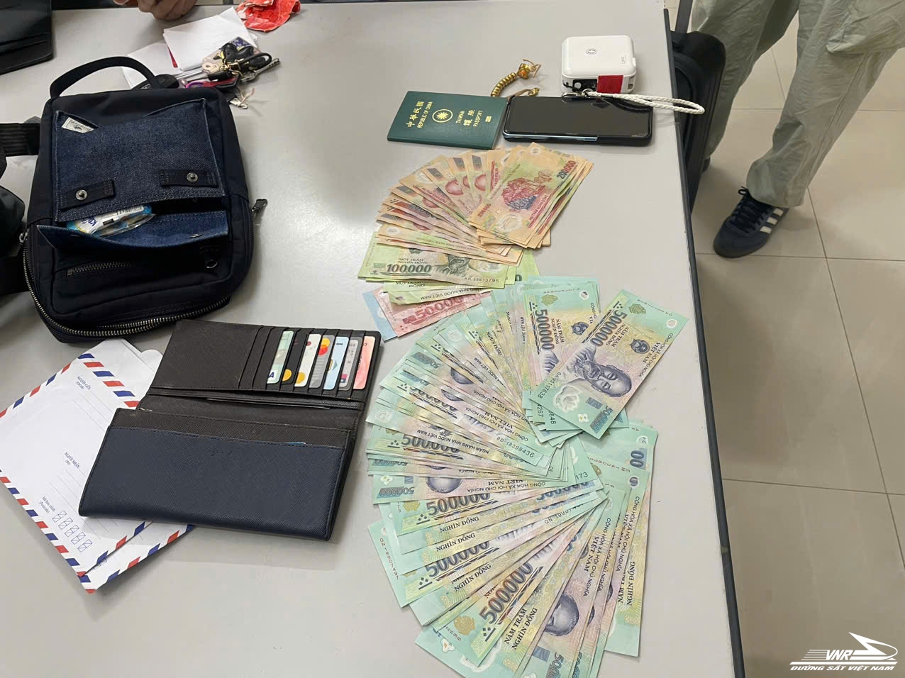 Ngay lập tức, Trưởng tàu Vũ Anh Dũng cùng tổ công tác đã tiến hành kiểm tra và lập biên bản sự việc. Bên trong chiếc túi chứa một lượng tài sản lớn bao gồm: Hơn 32 triệu đồng tiền mặt (nhiều mệnh giá từ 50.000đ đến 500.000đ), 4.600 Đài tệ (tiền Đài Loan), tổng giá trị quy đổi khoảng gần 36 triệu đồng. Ngoài ra, còn giấy tờ, tài sản khác như: hộ chiếu, điện thoại di động, trang sức kim loại màu vàng và các loại thẻ ATM…